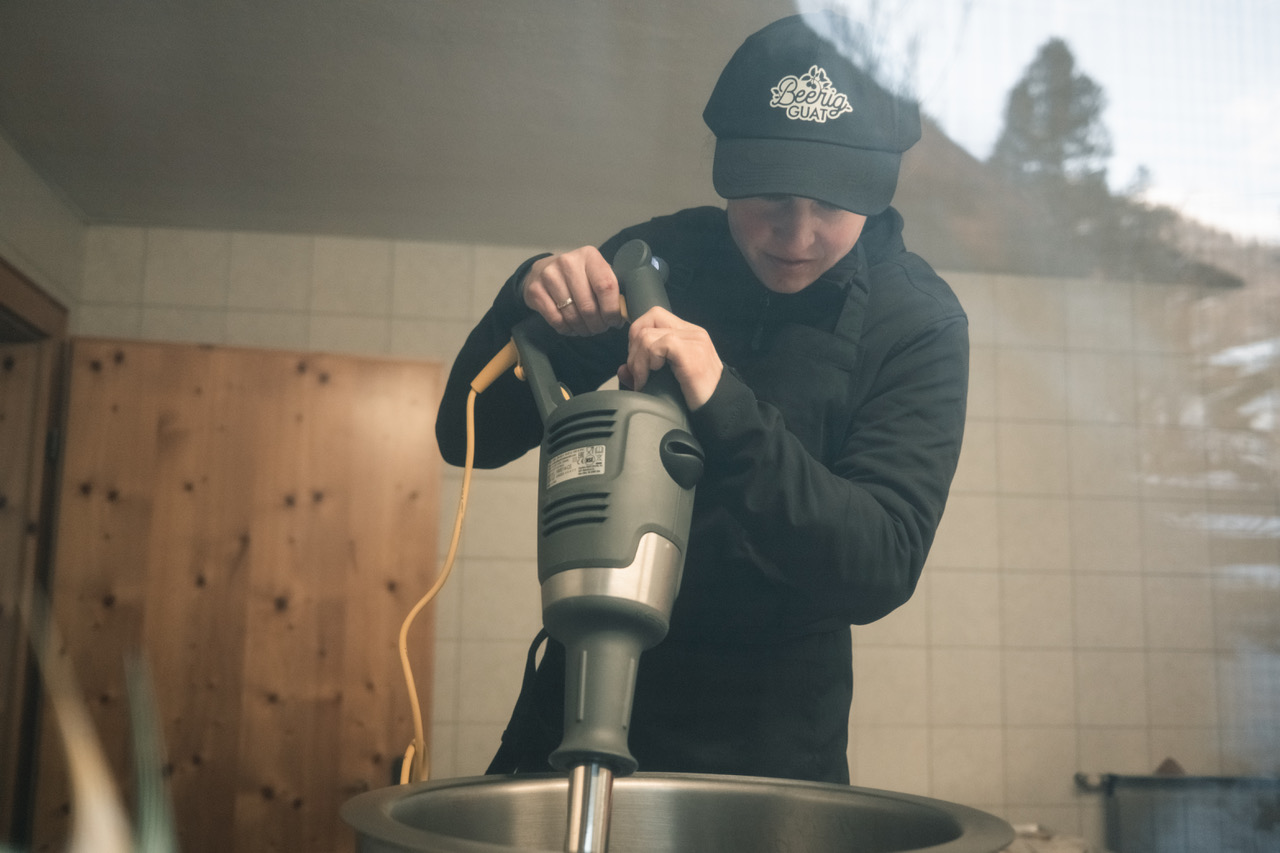 Traditionen zu pflegen ist Petra und Alois wichtig. Aber genauso sehr lieben sie es, neue Wege zu beschreiten. Petra erzählt: „Unser Hof liegt auf etwa 1.200 Metern in Virgen, und wir haben echt Glück mit der Lage. Über 2.000 Sonnenstunden im Jahr, ein Tal, das sich ideal von Ost nach West zieht. Dazu eine schützende Bergkette im Norden, die den kalten Tauernwind draußen hält. Das ergibt bei uns ein fast mediterranes Kleinklima.“