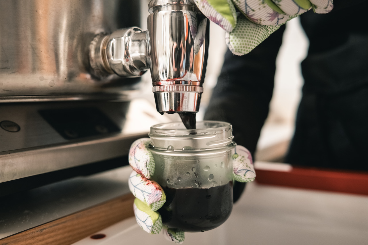 Denn wer schon mal selbst Sirupe, Liköre oder Fruchtaufstriche gemacht hat, weiß: Das ist eine kleine Kunstform. „Ein bisschen zu viel Zucker, ein paar Grad zu heiß oder zu lange gerührt – und schon wird’s zu süß, zu dünn oder zu fest“, sagt Petra und lacht. „Da gehört viel Erfahrung und Fingerspitzengefühl dazu. Und ja, manchmal auch Geduld.“