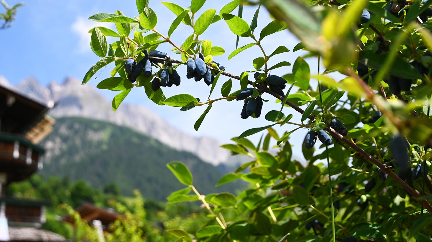Trotz der Höhenlage reifen hier verschiedene Obstarten erstaunlich gut. Petra erklärt: „Die Bedingungen sind wie gemacht für Obst und Beeren. Also haben wir 2017 unsere Beerenobstkultur angelegt. Mit Maibeeren, Himbeeren, Mini-Kiwi, Aroniabeeren und schwarzen Johannisbeeren. Das war für uns der nächste logische Schritt, und einer, der uns bis heute große Freude macht.“