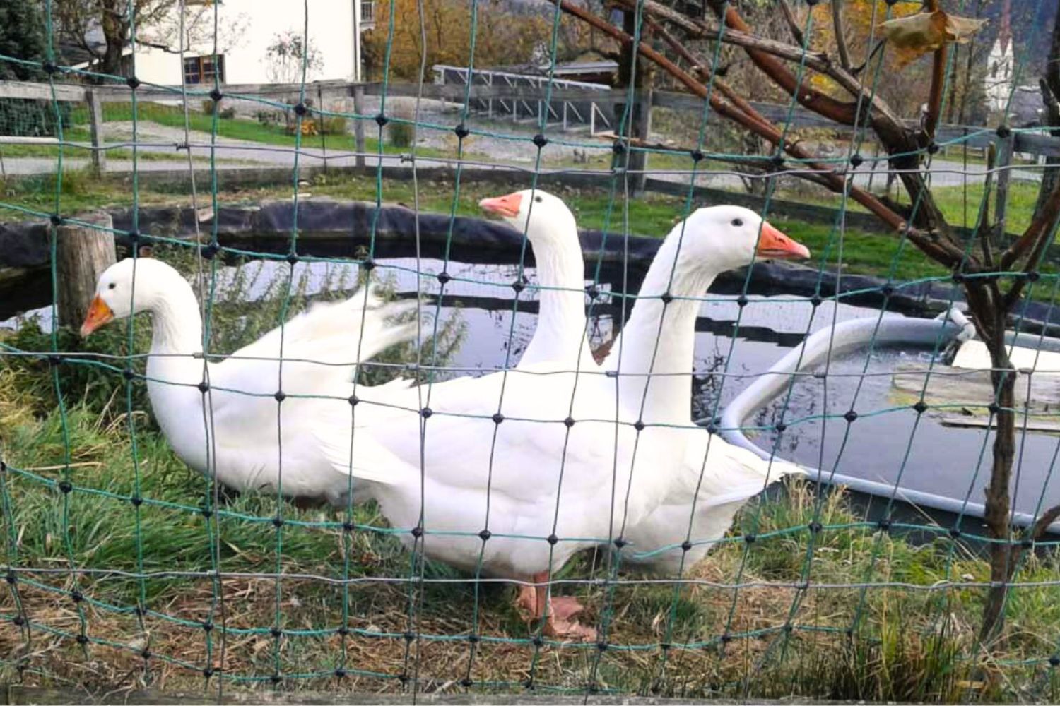 „Bei unseren Bio Weidegänsen ist dies nicht anders“, so Gertraud und erklärt: „Auch sie haben freien Zugang zur Weide unter den Streuobstwiesen und natürlich auch zu unserem Teich. Hier können sie sich ein Bad genehmigen oder einfach im Schatten der alten Obstbäume ein Schläfchen halten. Eine wunderbare Abwechslung sind für sie die Wanderer, die am Schuttkegel von Oberlienz vorbei spazieren. Dann wird geschnattert was das Zeug hält“.