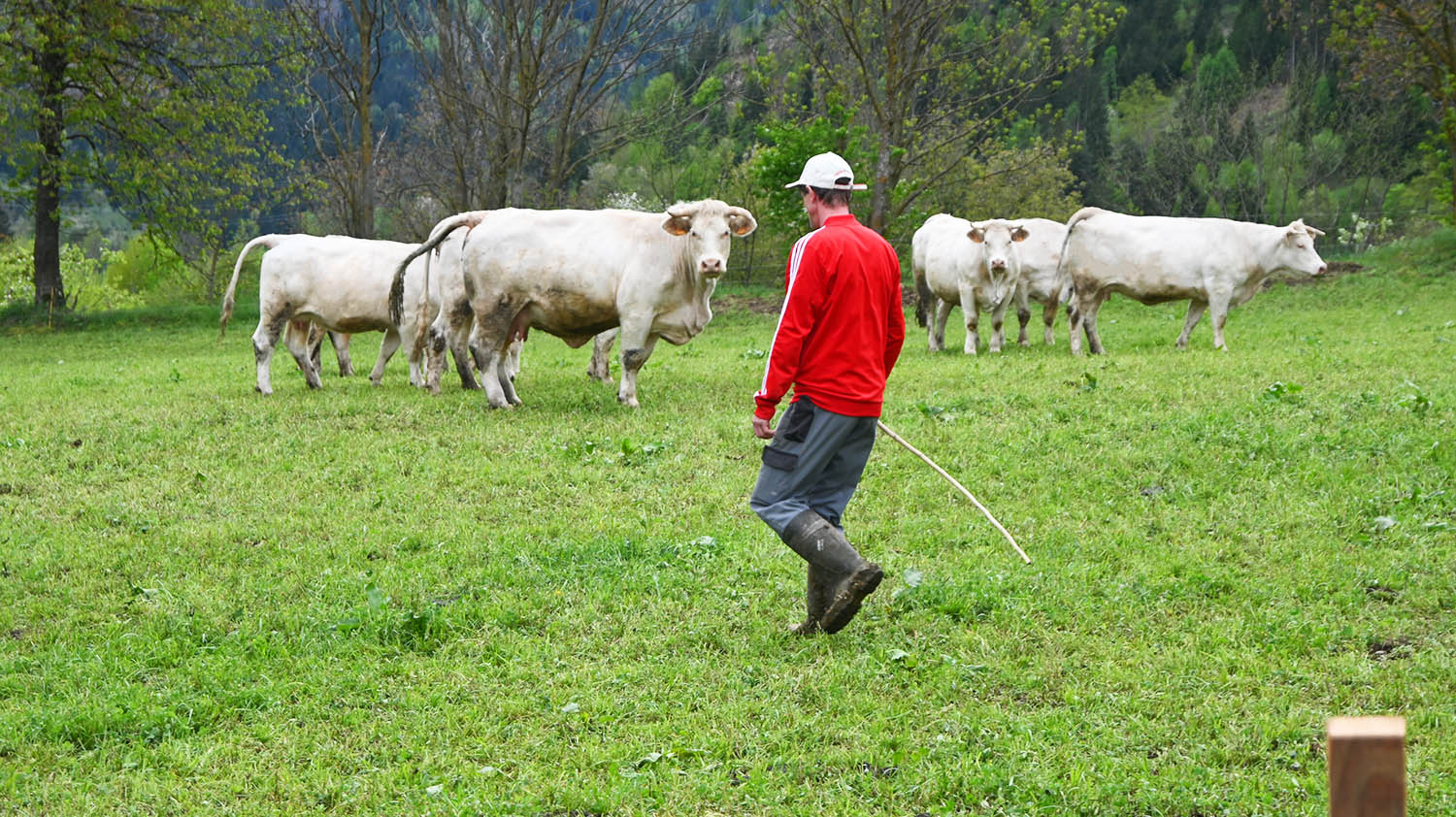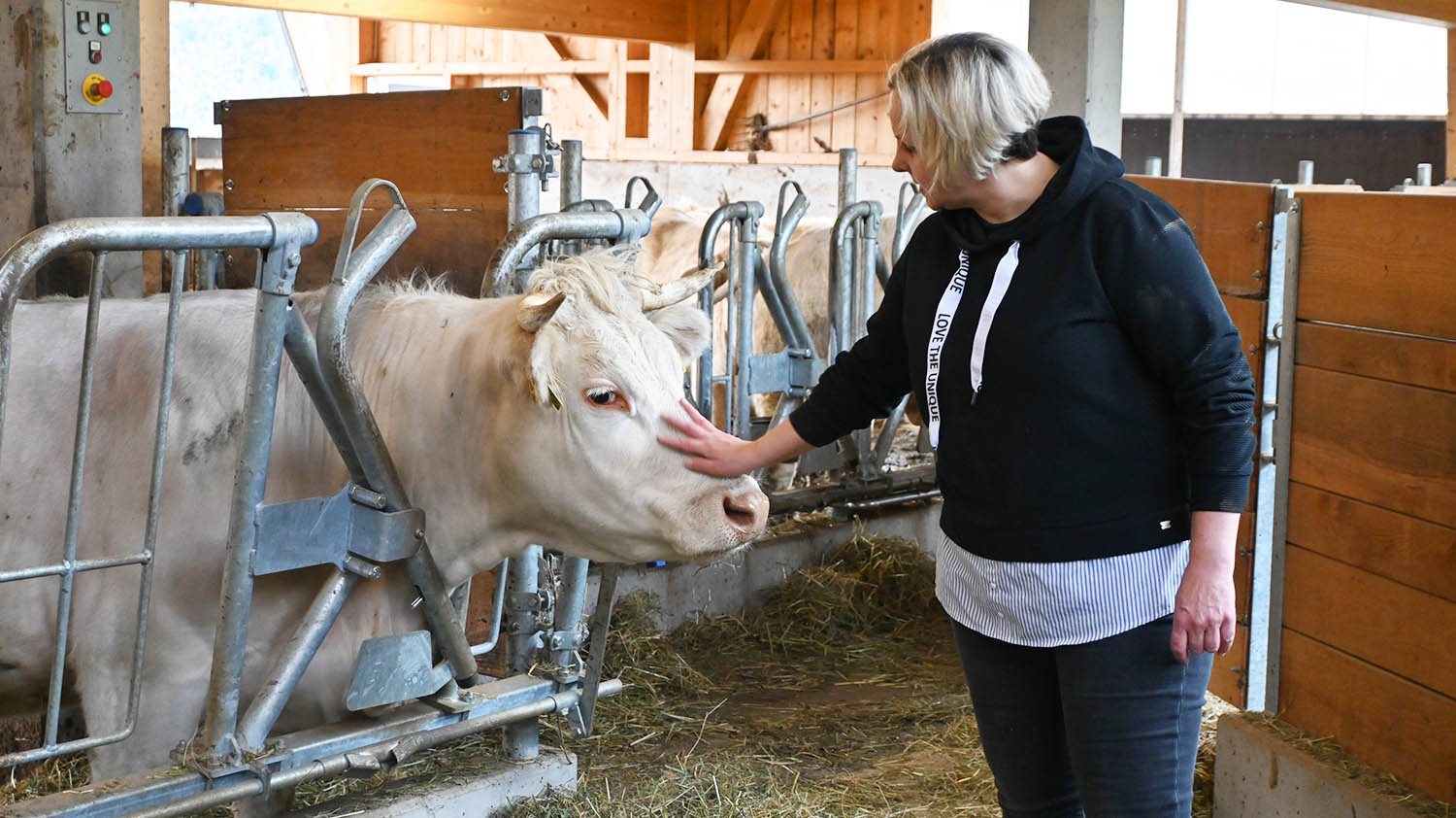 „Wir besuchten einen Zuchtbetrieb, der sich auf die Rinderrasse Charolais spezialisiert hat. Dort gab es weit über hundert Charolais-Kälber. Valentin wollte wissen, wie er denn jetzt herausfinden kann, welches sein Kalb werden wird“, blickt Gertraud zurück und erzählt schmunzelnd weiter: „Plötzlich löste sich ein Kalb aus der Gruppe, kam auf Valentin zu, blickte ihn an und Valentin sagte „Das ist mein Kalb, die Uschi!“. Beim Kaufabschluss stellte sich heraus, dass beide am gleichen Tag, dem 7. Jänner, Geburtstag haben. Auch noch heute, rund zwei Jahre später, haben die Beiden eine ganz eigene Beziehung zueinander.“