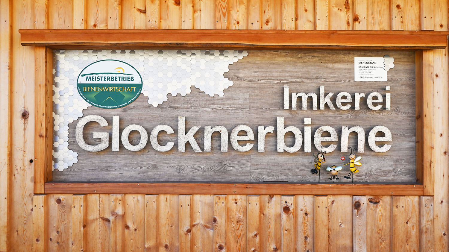„Auf zwölf Tafeln und einem Schaukasten, wo sich lebende Bienen hinter Glas befinden, kann man Wissenswertes über das Leben der Bienen sowie über die Produkte, die sie erzeugen, erfahren. Ein drei Meter hoher Honig Bär in Lärche geschnitzt, rundet das Erlebnis ab“, informiert Sebastian, der auch gerne fachkundige Führungen anbietet. Für weitere Informationen ist Sebastian unter 0699 199-00400 oder per Mail unter info@glocknerbiene.com erreichbar.