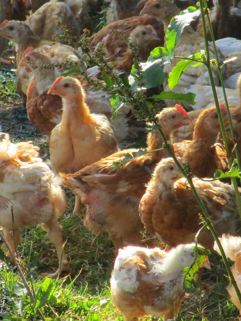 Michael machte sich auf die Suche nach einer Hühnerrasse, die seinen Vorstellungen von Tierwohl entsprachen. Er erzählt: „Ich stieß auf die Schlierbacher Wildhendeln. Aufgrund ihres langsamen Wachstums muss ihnen rund 8 – 10 Wochen Zeit gegeben werden. Also rund doppelt so lange wie konventionellen Masthühnern. Sie können das Grün der Wiesen und Felder freilaufend genießen, scharren, picken und ein natürliches, artgerechtes Leben führen. Wohl das Geheimnis, warum das Fleisch der Osttiroler Wildhendln so feinfasrig und unglaublich zart ist“.