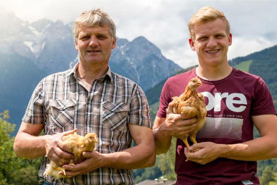 Leo´s Sohn Michael sprüht vor Leidenschaft, wenn er über die Landwirtschaft spricht. Der 27jährige hat sich auf die Mast von Wildhendln spezialisiert. „Im Rahmen eines Praktikums lernte ich die Hühnermast kennen und kam auf die Idee, dies auch zu Hause am Hof den Kunden anzubieten. Einzig von der schnell wachsenden Hühnerrasse, die bereits nach rund vier Wochen ihr Schlachtgewicht erreicht, war ich nicht begeistert. Viele dieser Hühner schaffen es durch die schnelle Gewichtszunahmen meist nicht mehr, sich frei zu bewegen“, erzählt Michael Girstmair.