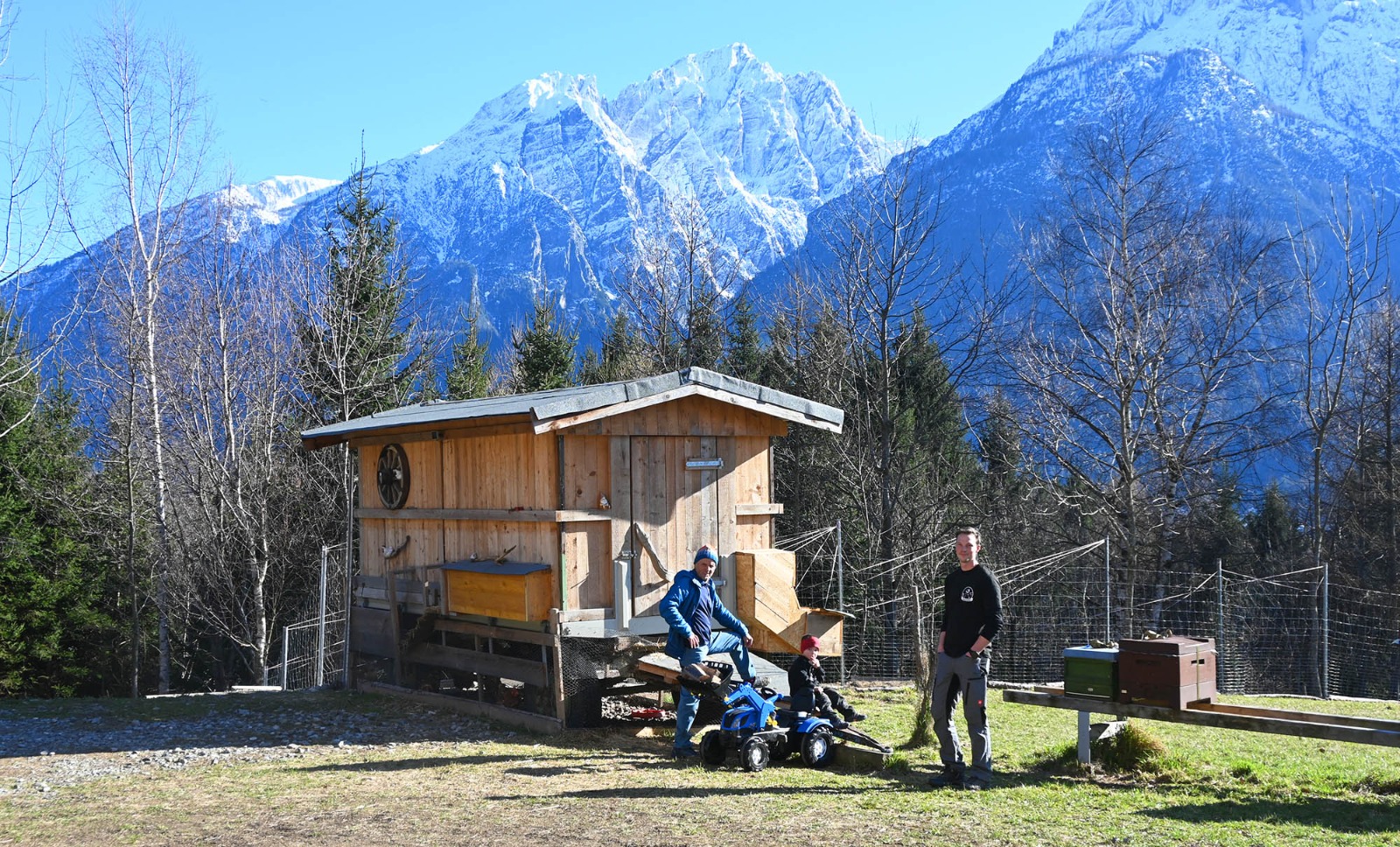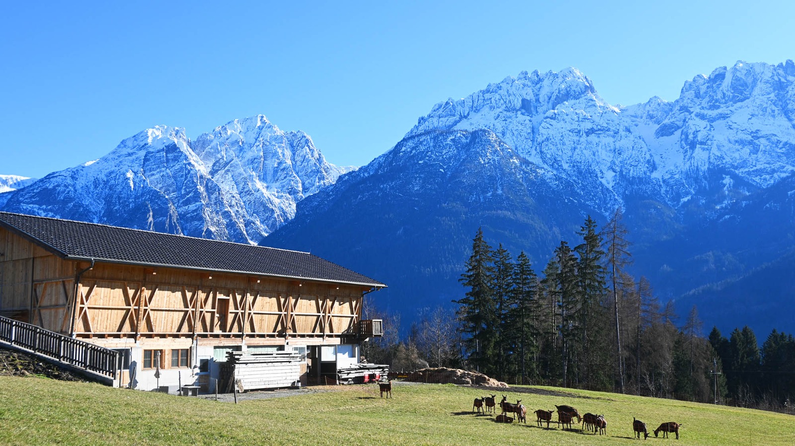 Als im Jahr 2018 das Sturmtief „Vaia“ über Osttirol fegte, waren die Schäden enorm. „Unser Familienwald, jahrzehntelang gewachsen, lag am Boden. Innerhalb weniger Stunden wurde er zu Schadholz“, blickt Benjamin Schneider zurück und erzählt: „Eine Landwirtschaft, von der wir leben können, war schon immer unser Traum. Also sahen wir den Schaden als Chance, den Traum Wirklichkeit werden zu lassen. Nachdem das Holz mit einer Seilwinde geborgen war, besorgten wir eine mobile Wandersäge und schnitten aus dem Schadholz das Bauholz für unseren Stall. Ein Plan wurde gezeichnet, das Fundament errichtet und gemeinsam mit drei Helfern haben wir den Stall gebaut. Nach rund zwei Jahren sind die ersten drei Ziegen eingezogen!“