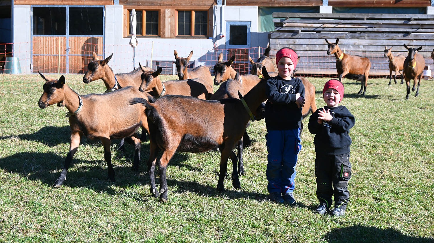 Die Wahl der Rasse fiel auf die Gemsfarbige Gebirgsziege. „Die Tiere sind robust, anpassungsfähig und hornlos. Trittsicher meistern sie selbst steilste Hänge. Wir sehen sie auch als ein Symbol für nachhaltige Berglandwirtschaft und gelebte Regionalität. Und, was nicht vergessen werden darf: Sie liefern hochwertige Milch, die Basis für unsere Ziegenmilch-Produkte“, sagt Benjamin.