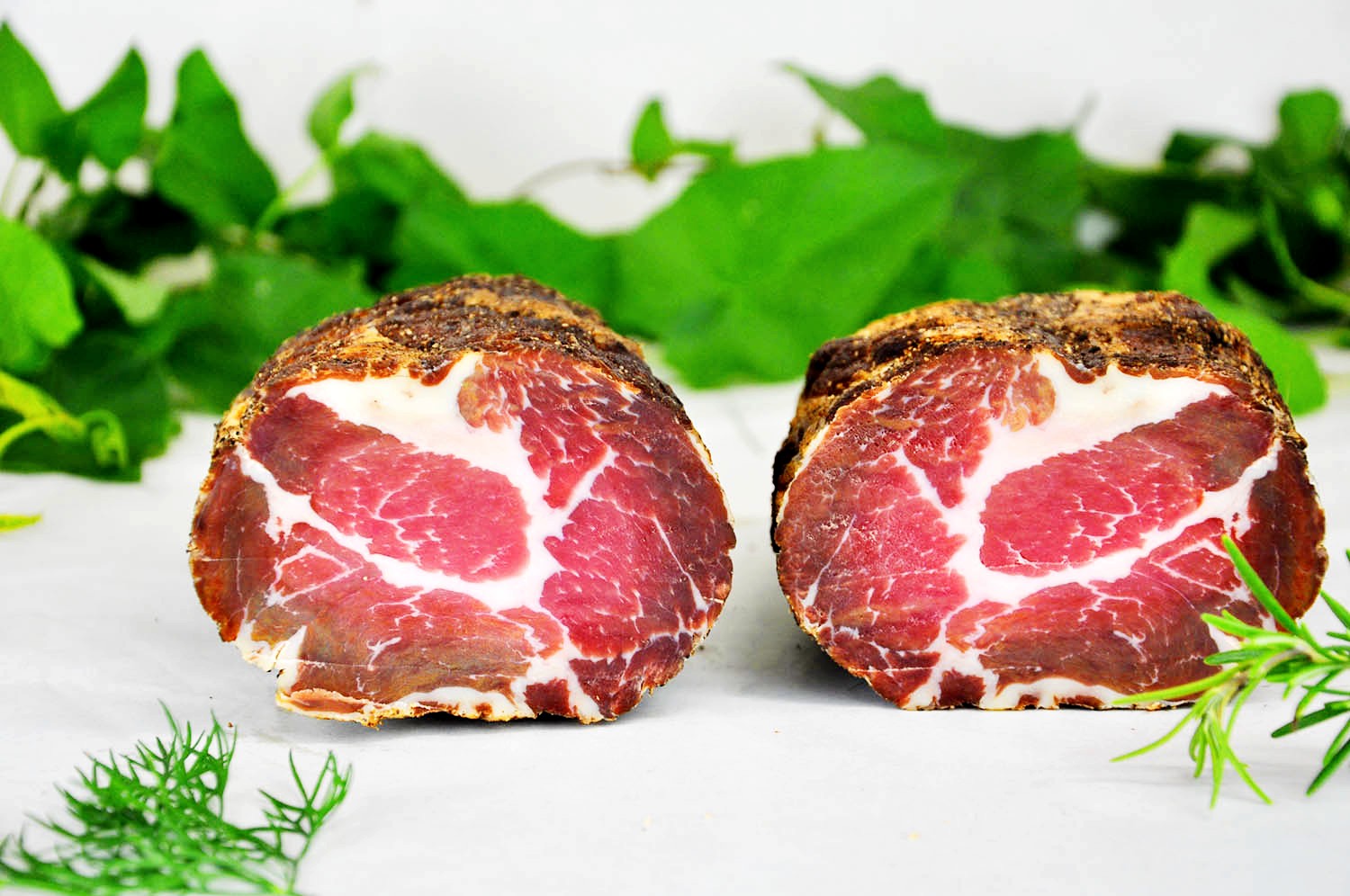 Der wunderbar zarte Osso Collo ist eine wahre Delikatesse und wird aus dem Nacken des Schweines (Schopf) von Hand veredelt. Der reichhaltige Umami-Geschmack ist durch die traditionelle Herstellungsmethode und die Verwendung von hochwertigen Zutaten geprägt. Das Fleisch stammt von Stroh-Schweinen, die ausnahmslos am eigenen Hof aufgezogen werden.