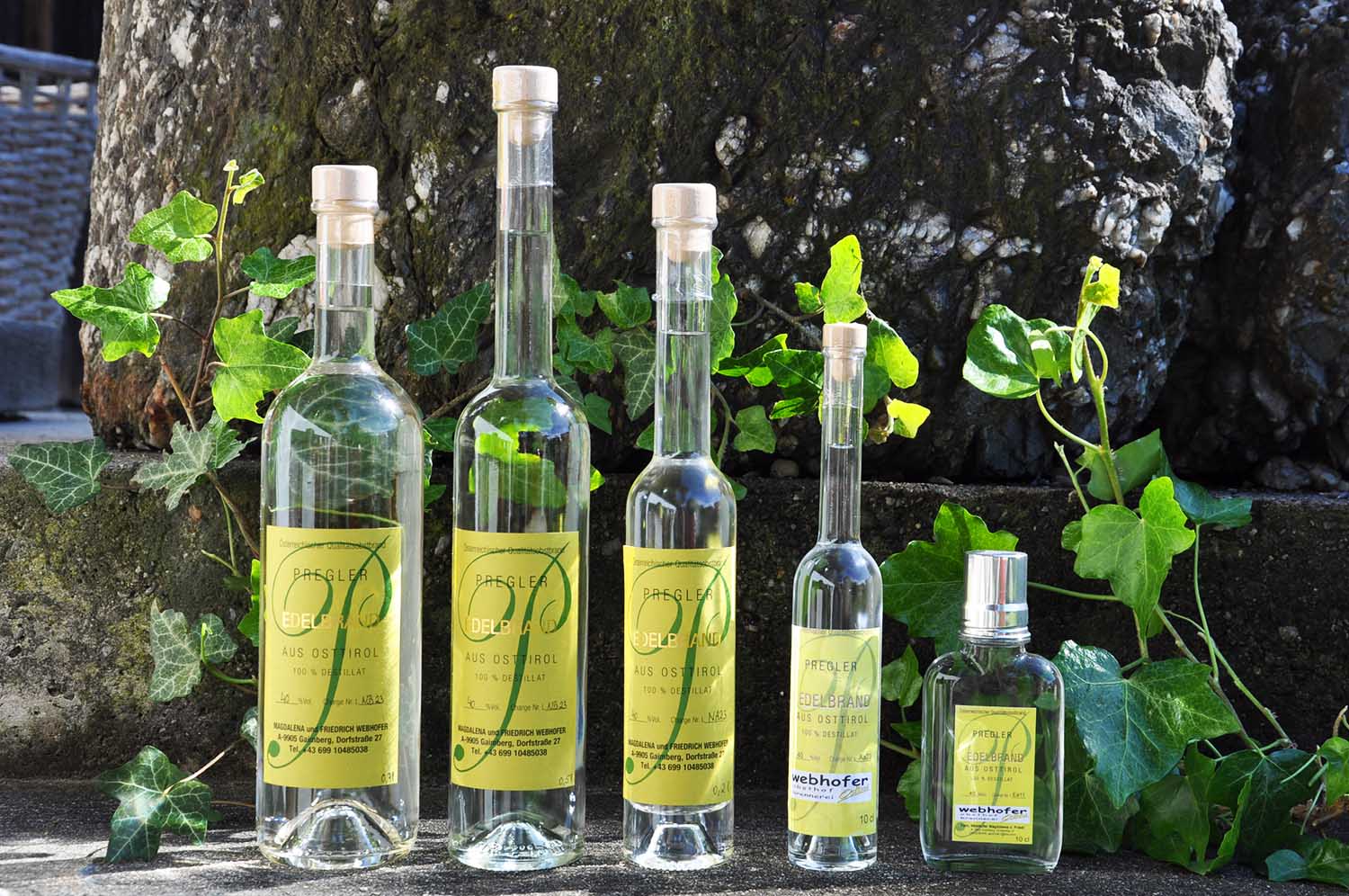 Seit Generationen – so auch am Obsthof Webhofer – wird in Osttirol das Wissen um die Kunst des Schnapsbrennens weitergegeben. Der Pregler ist Ausdruck dieser lebendigen Tradition. Die sorgfältige Auswahl vollreifer, aromatischer Äpfel und Birnen aus der Region bildet die Basis für dieses edle Destillat. Die Früchte werden in Handarbeit geerntet und schonend verarbeitet.